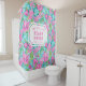 This shower curtain design features a preppy hibiscus summer print. You can personalise with your name and location. This shower curtain is perfect for a beach cottage or vacation rental.