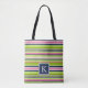 Preppy Lime, Pink and Navy Stripe Monogram Tote Bag