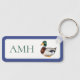This preppy monogrammed keychain features a mallard duck in classic shades of green, blue and brown.  Personalise the monogram on the front with your choice of initials and contact information on the back in matching green.  Great for sportsman inspired gift bags.