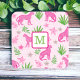 Preppy Monogram Pink Cheetah Pink Background Coaster
