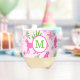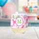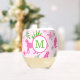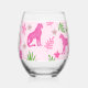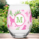 Preppy Monogram Pink Cheetah Pink Background Stemless Wine Glass