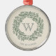 Preppy Monogram Sage Green Wreath Metal Ornament