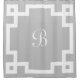 A white Greek key border frames a monogram in white script font on a grey background. Easily customise it with your own initial. Also makes a great personalised housewarming gift!