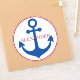 This preppy vinyl sticker features a classic nautical anchor in blue on white with an accent of red. Personalize with your choice of name or special text. Great for personalized gift bags and party favors.