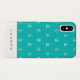 Get your personalised iPhone case with an elegant look featuring a preppy chic pattern of gold and silver anchors on a background of your choice navy, turquoise or white. Monogram is on a white border at the bottom in a sans serif gold font.