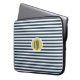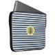 Navy and white striped background with Gold oval monogram holder. Customised decorative font monograms make a great personal touch.
