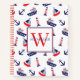 This cute monogrammed spiral notebook features a nautical pattern of sailboats, lighthouses, anchors and ships in classic red, white and blue. Personalise the monogram on the front with your choice of name and initial. Great for back to school.