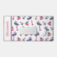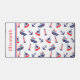This cute personalised desk mat features a nautical pattern of sailboats, lighthouses, anchors and ships in classic red, white and blue. Personalise the front with your choice of name or special text.