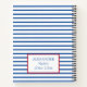 This preppy notebook features classic blue and white stripes with an accent of red and a nautical anchor. Personalise with your choice of name or special text on the back. Great for personalised gift bags and party favours.