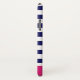 Protect your phone in a trendy pattern phone case. Modern and fun, this custom design features navy blue and white horizontal stripes and a hot pink rectangle on the bottom framing a text placeholder for your name in a curvy display typeface. Easily personalize this design to match your style by clicking "Customize" to go to the design tool and adding your own custom text or details.