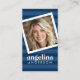 Preppy Navy Striped Pattern Custom Name and Photo Business Card