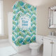 This shower curtain design features a preppy ocean waves summer print. You can personalise with your name and location. This shower curtain is perfect for a beach cottage or vacation rental.