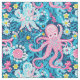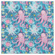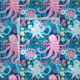 A seamless preppy hand-drawn pattern featuring pink and white octopuses surrounded by white, blue, and yellow flowers, set against the deep blue ocean floor. The design combines whimsical sea creatures with vibrant floral elements, creating a charming and lively underwater scene.