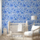 Preppy Palm Beach Blue & White Flowers Wallpaper