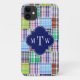Preppy Patchwork Madras Navy Quatrefoil Monogram Case-Mate iPhone Case