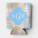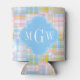 Preppy Patchwork Madras Pastel Quatrefoil Initials Can Cooler