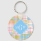 Preppy Patchwork Madras Pastel Quatrefoil Initials Key Ring