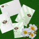 Preppy pickleball themed celebration with green and white stripes and chocolate brown accent typography