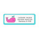 A very preppy return address label that features a cute pink and aqua whale on white with matching aqua trim. Personalise with your choice of text.