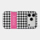 A preppy pink and black houndstooth design is featured on this iPhone case. Modern and cute -- Perfect for a girly tween or teenager. Easily personalise with your name!