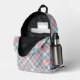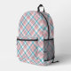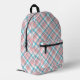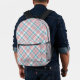 A fun backpack featuring a pink blue and white preppy plaid pattern which is perfect for back to school.