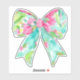 This cute coastal inspired vinyl sticker features a large bow in preppy shades of pink and green. Great for a gift bag!