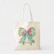 This cute tote bag features a large bow in preppy shades of pink and green and the name in black. Personalise with your choice of name on the front and special text on the back. Great for a girl's weekend or as a personalised gift bag!
