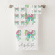 This cute personalised bath towel set features bows in preppy shades of pink and green. Personalise with your choice of name or special text. Great for back to school.