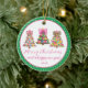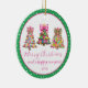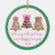 Preppy Pink and Green Christmas Trees Ceramic Ornament