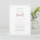 Preppy Pink And Green Hydrangea Crest Wedding Invitation