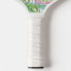 This cute monogrammed pickleball paddle features a tropical palm tree pattern in preppy shades of pink, green and white. Personalise the matching pink and green monogram with your choice of initial on the front and name or special text on the back.