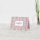 Preppy Pink and Green Plaid Monogram Note Card