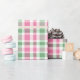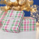 This cute gift wrap features a classic plaid pattern in preppy shades of pink, green and white.