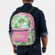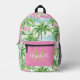 Preppy Pink and Green Tropical Palm Trees Monogram Printed Backpack