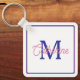 Preppy Pink and Navy Blue Simple Monogram Key Ring