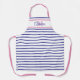 Preppy Pink and Navy Blue Stripe Simple Monogram Apron