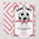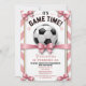 Preppy Pink Bow Girl Soccer Game Time Birthday Invitation