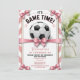 This sporty-chic design features bold pink stripes paired with an adorable bow accent, creating the perfect mix of athletic energy and girly charm. Ideal for little soccer stars who love the game, this invitation sets the tone for a fun “Game Time” birthday celebration filled with goals, giggles, and team spirit.