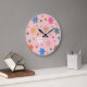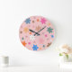 Preppy Pink Colourful Flower Heart Y2K Pattern Large Clock