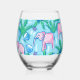Preppy Pink Elephant Palm Tree Stemless Wine Glass