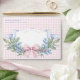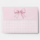 This Christmas envelope has a Preppy Chinoiserie pink and white gingham pattern. The back flap has a pink gingham bow.