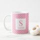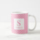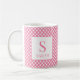 Preppy Pink Gingham Plaid Monogram Name Coffee Mug