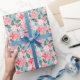 Preppy Pink & Green Christmas Poinsettias Wrapping Paper