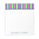 This cute monogrammed notepad features bright stripes in preppy shades of pink, green, navy blue and white. Personalise with your choice of name.