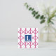 Preppy Pink Navy Trellis Bamboo Pattern Monogram Card