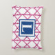 Preppy Pink Navy Trellis Bamboo Pattern Monogram Decorative Cushion