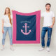 Preppy Pink Polka Dot Anchor with Navy Custom Name Fleece Blanket