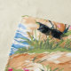 This beach towel design features a preppy tropical beach scene with a pink sand castle on a sand dune. You can personalise with your name and location. These towels are perfect for a beach vacation home or rental.