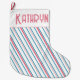 A fun holiday stocking for the modern girl. These stockings include a whimsical pink and blue stripe design with a bold font for the name.