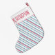 Preppy Pink Stripe Girls Large Christmas Stocking